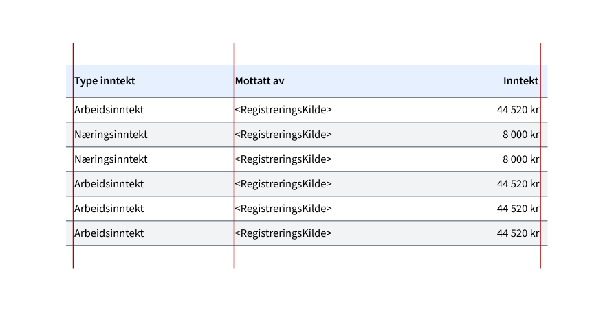 - I tabeller hvor kolonner blander tall og bokstaver bør det vurderes pr. tabell om innholdet skal venstrestilles eller høyrestilles.