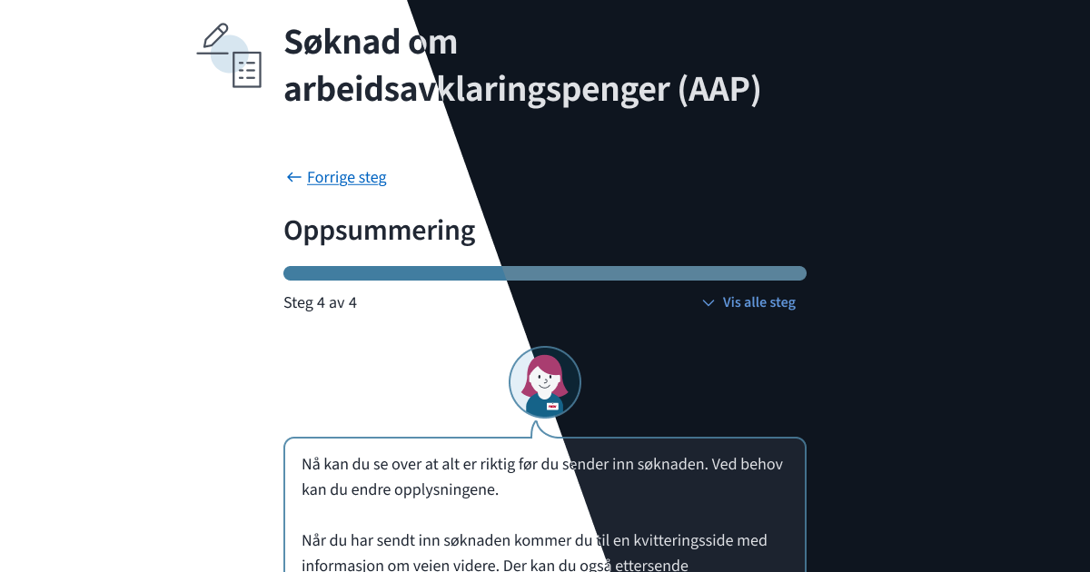 Når vi designer for darkmode, er det ikke bare å invertere fargene. Det krever en ny forståelse av hvordan visuelt hierarki fungerer. I lightmode er vi vant til å bruke lysere bakgrunner og mørkere elementer for å skape fokus. Men i mørk modus må vi tenke annerledes for å sikre at viktige elementer fortsatt skiller seg ut og at strukturen er like tydelig. Navs digitale løsninger inneholder mye viktig informasjon, og det er da viktig at elementene som fremhever den informasjonen ikke mister mening på tvers av fargetema.